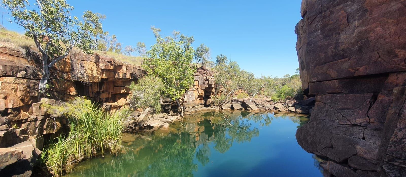 The second place to sample was the spectacular Grevillia Gorge. We descended down the gorge and began looking for spiders in crevices. I continued the “Schweep – Schweep” and Erin used the extension on the net to extend it to 8 meters long. At the bottom of the Gorge was a waterhole and after hot work in the sun, a swim was definitely in order. The climb down was phenomenal, the surroundings breathtaking, and the water, also breathtaking…. breathtakingly cold! Nevertheless we weren’t about to venture this far into the Kimberleys without having a swim. This was a great finish to another amazing day in the field and we headed back to base camp before dusk. There was some late night processing in the Lab in the evening before we retired to the campfire.
